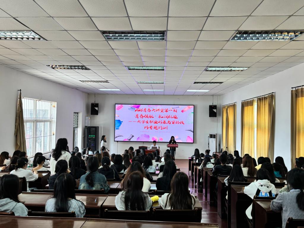 为深化美育教育,提升学生综合素养,“ 青春领航·礼润机电”2026年青春大讲堂第一期——大学生职业形象与穿搭技巧专题培训分别于3月6日下午2:30在马家田校区二教309,3月9日下午2:30在金江校区成功开讲。本期活动聚焦形象管理,专门邀请国家认证高级化妆师、化妆培训高级讲师海燕为同学们带来了一场关于美妆与穿搭的实用美学盛宴,分别吸引了一百多名学生到场聆听,现场互动热烈,座无虚席。